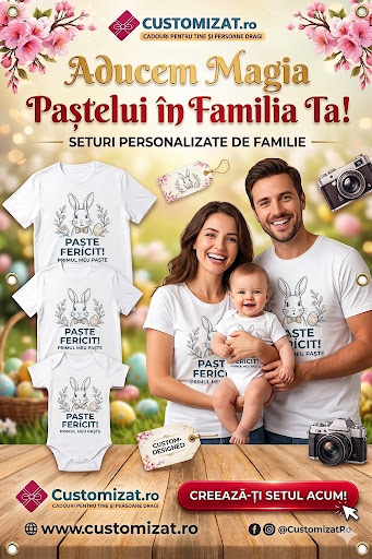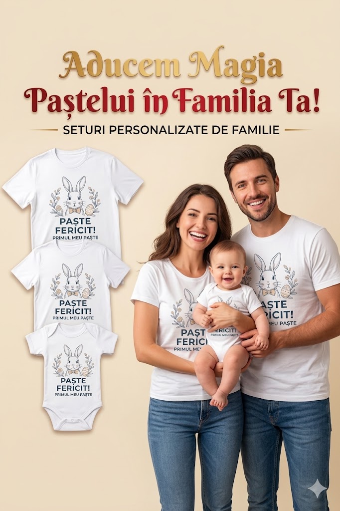 Transformă sărbătorile pascale în amintiri de neuitat cu setul nostru exclusiv de haine personalizate! Fie că este vorba despre „Primul meu Paște” al bebelușului sau despre masa festivă în familie, aceste tricouri coordonate aduc un plus de farmec și unitate.